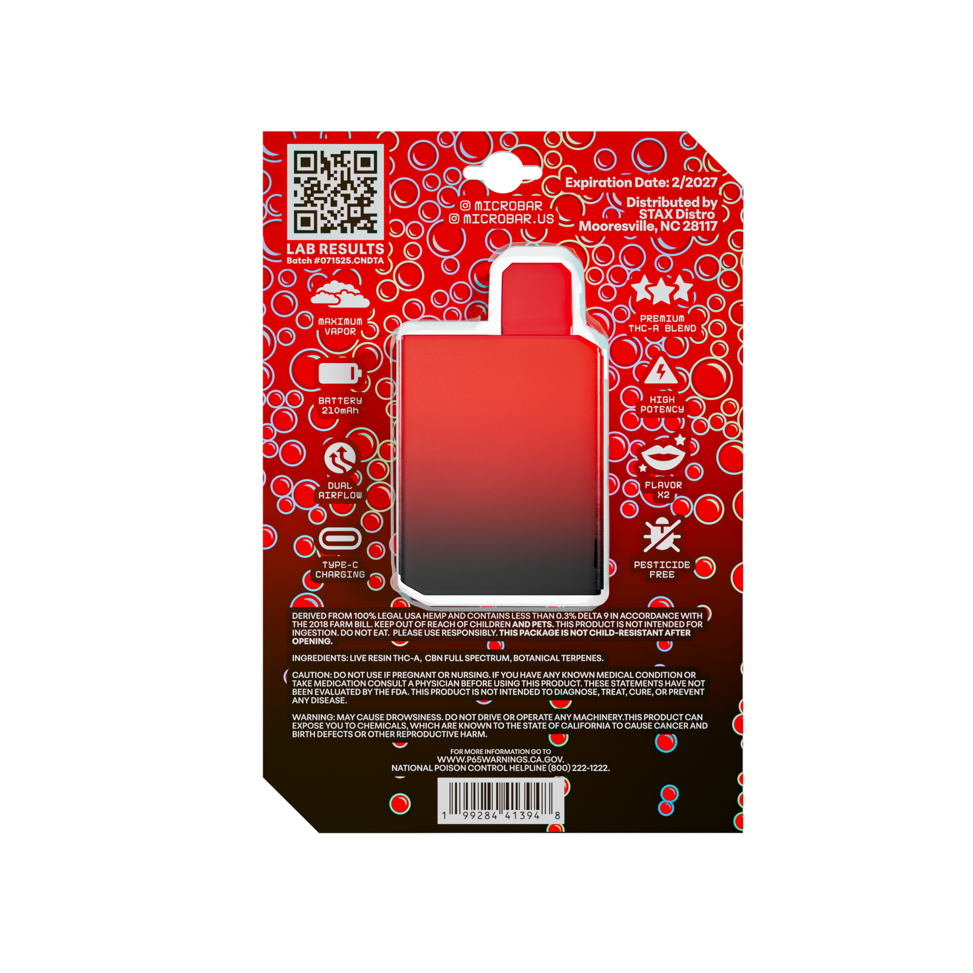 Zhirley Temple Micro Bar is the remix your sesh didn't know it needed. Bright cherry vibes with a citrusy twist, this hybrid hits like a nostalgia trip with a side of elevation. It's playful, it's punchy, and it's got just the right amount of sweet to make every puff feel like a treat. Whether you're hitting the beach, pre-gaming the group chat, or just vibing solo, Zhirley Temple brings a bubbly energy that's equal parts flavor and feel-good.