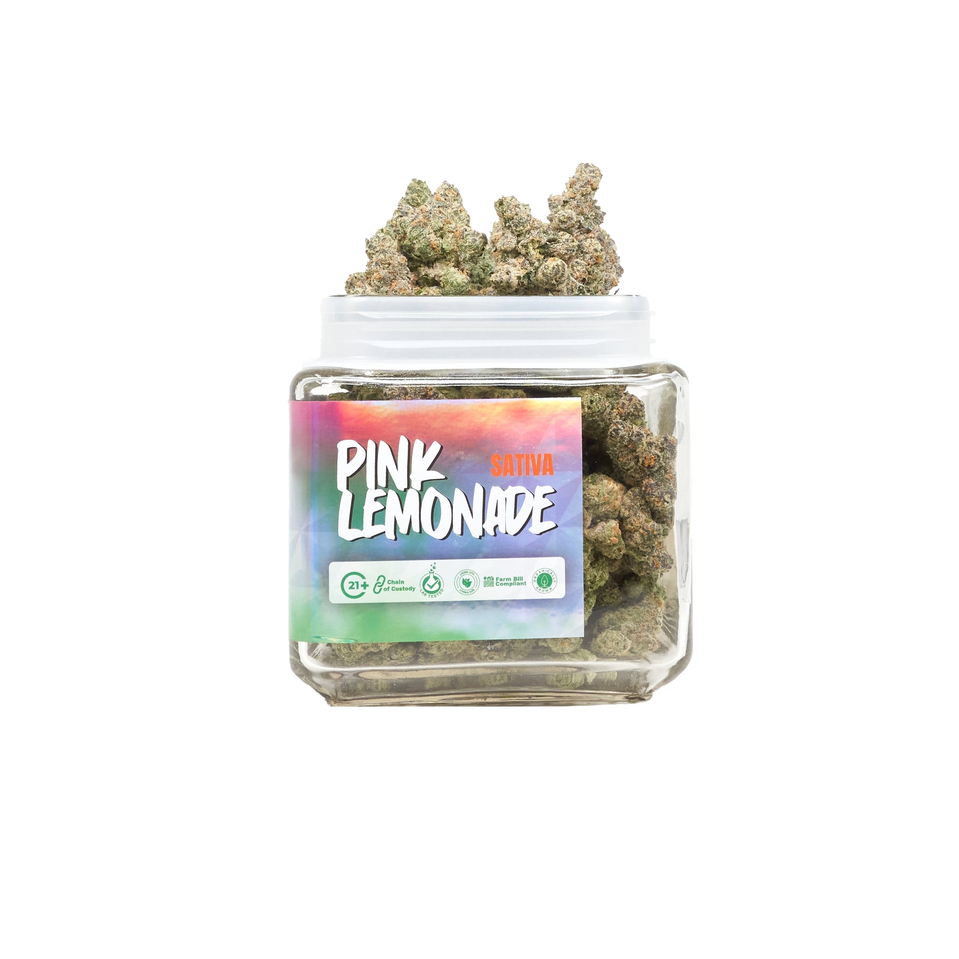 This jar of Pink Lemonade is liquid sunshine in flower form, a zesty cross of Lemon Skunk and Purple Kush that's dripping with flavor and designed to lift your mood and settle your soul. The scent profile is as vivid as the name suggests: sweet citrus, sugared lemon, and a whisper of fresh mint, wrapped in a base of light earthy kush. One hit and the high blooms fast: head-to-toe relaxation, gentle euphoria, and a soothing body buzz that doesn't weigh you down. Perfect for post-work resets, social vibes, or leveling out the noise in your head without sinking into the couch. Pink Lemonade clocks in at 32% THCa, so the potency is no joke, but the experience is joyful, balanced, and welcoming. The buds are bright mint green with orange pistils and a frosty golden trichome coating that sparkles like sugar on a lemon rim. Whether you're looking for a mood booster or a sweet escape, this jar gives you room to enjoy it your way. Roll it, pack it, pass it, or savor it solo, Pink Lemonade brings feel-good flavor with high function baked in.